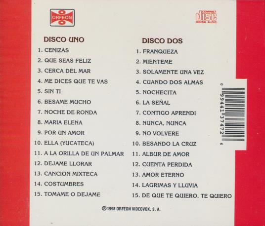 Serie 30 Exitos - 2 CD'S compilation. Stereo. Compact Disc Digital Audio. Catalog number JCD-13747.