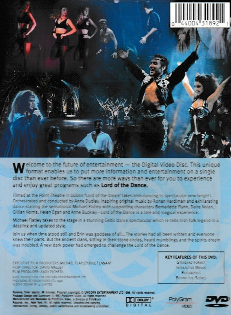 Filmed at the Point Theatre in Dublin 'Lord of the Dance' takes Irish dancing to spectacular new heights. Orchestrated and conducted by Anne Dudley, inspiring original music by Ronan Hardiman and exhilarating dance starring the sensational Michael Flatley with supporting characters Bernadette Flynn, Daire Nolan, Gillian Norris, Helen Egan and Anne Buckley — 'Lord of the Dance' is a rare and magical experience. Michael Flatley takes to the stage in a stunning Celtic dance spectacular which re-tells Irish folk legend in a dazzling and updated style. Join us when time stood still and Erin was goddess of all... The stories had all been written and everyone knew their parts. But the ancient clans, sitting in their stone circles, heard mumblings and the spirits dream was troubled. A new dark power had emerged to challenge the Lord of the Dance.