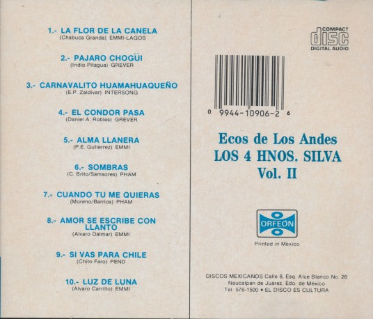 Los 4 Hnos. Silva: Ecos De Los Andes Vol. II MUSIC AUDIO CD latin andean folk!