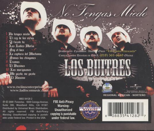 Los Buitres De Culiacan: No Tengas Miedo MUSIC AUDIO CD latin pop! 2009 Mexico