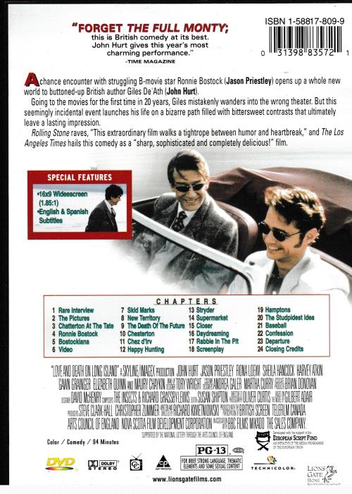 Love & Death On Long Island DVD VIDEO MOVIE Jason Priestley John Hurt British