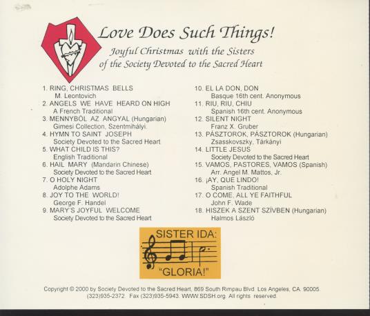 Love Does Such Things! Joyful Christmas MUSIC AUDIO CD Sisters of the Society