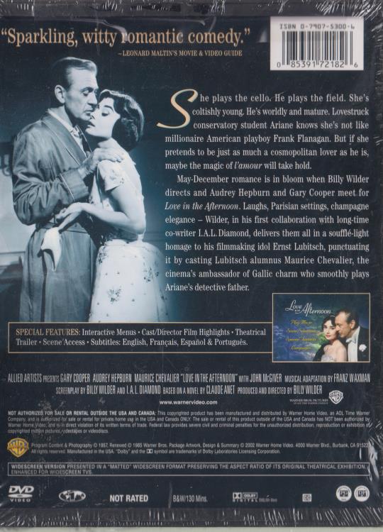 Love In The Afternoon DVD VIDEO MOVIE Audrey Hepburn romance comedy NEW SEALED