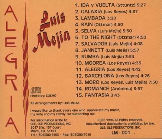 Luis Mejia: Alegria MUSIC AUDIO CD latin flamenco guitar! 1996 SIGNED AUTOGRAPH