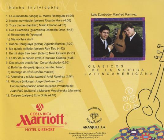 Luis Zumbado & Manfred Ramirez: Noche Inolvidable MUSIC AUDIO CD Costa Rica duo!