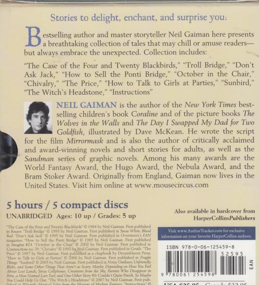 Best selling author and master storyteller Neil Gaiman presents a breathtaking collection of tales that may chill or amuse readers—but always embrace the unexpected. Collection includes: