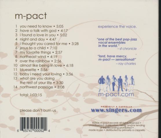 M-pact: Self-Titled MUSIC AUDIO CD six-piece vocal a cappella jazz pop mix! 2006