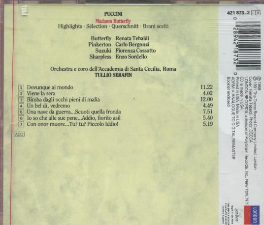 Giacomo Puccini / Renata Tebaldi, Carlo Bergonzi, Fiorenza Cossotto, Tullio Serafin: Madama Butterfly: Scenes & Arias
