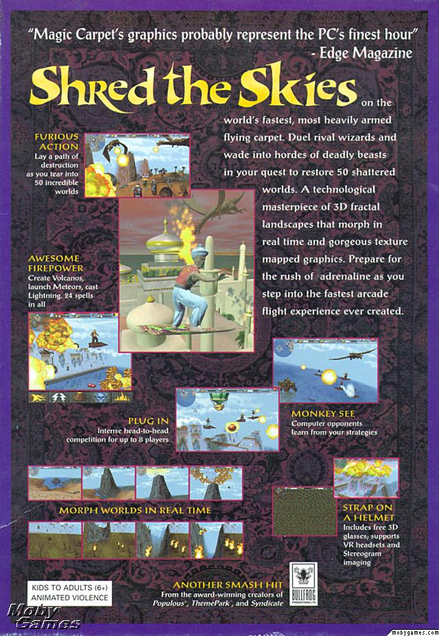 A newborn of the latest magical creation from Bullfrog, Magic Carpet has succeeded in surpassing all that has been made since in the history of game playing in the world of 3D engine. The game could almost be considered as a flight simulator (the original idea of the programmers) since the sensation of flight during the game is intense. Nevertheless, Magic Carpet is not a flight simulator, but much more!