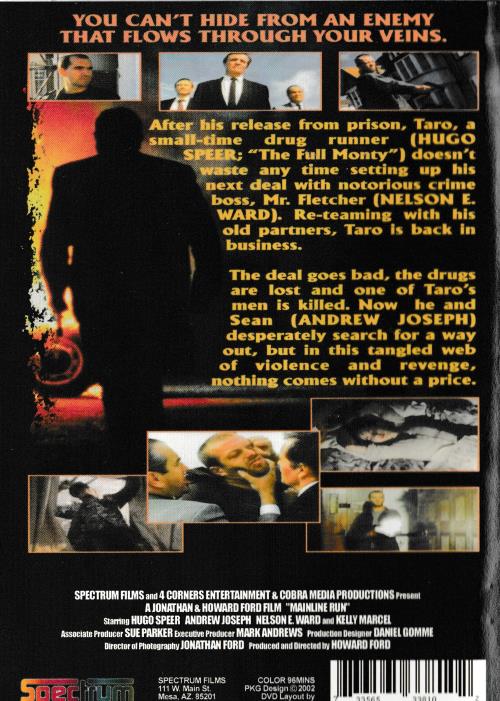 YOU CAN'T HIDE FROM AN ENEMY THAT FLOWS THROUGH YOUR VEINS. After his release from prison. Taro, a small-time drug runner (HUGO SPUR; "The Full Monty") doesn't waste any time setting up his next deal with notorious rin se boss, Mr. Fletcher (NELSON E. WARD). Re-teaming with his old partners, Taro is back in business. The deal goes bad, the drugs are lost and one of Taro's men is killed. Now he and Sean (ANDREW JOSEPH) desperately search for a way out, but in this tangled web of violence and revenge, something comes without a price. "It's TRAINSPOTTING with an edge! A fast paced, non stop, action thrill ride!" Baker Street Film Review