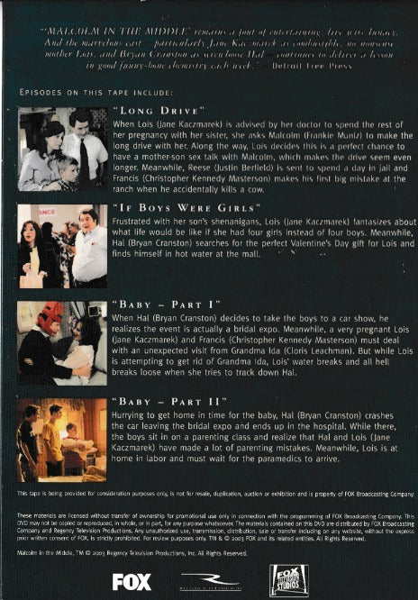 Malcolm In The Middle FYC 4 Episodes DVD VIDEO TV SHOW family drama comedy! 2003