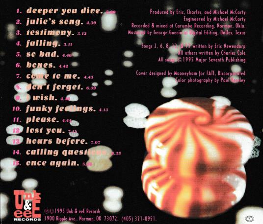 sugarcrash by Mandala (a band out of Norman Oklahoma featuring Charles Cole and and Eric Newendorp on guitars and vocals) 1995 Contents: deeper you dive julies song testimony falling so bad bones come to me dont forget i wish funky feelings please lost you hours before calling questions once again