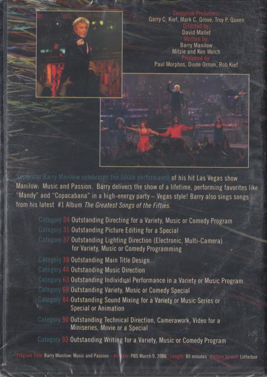 Barry Manilow: Music And Passion DVD VIDEO CONCERT FYC live Las Vegas NEW SEALED