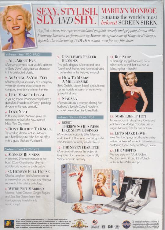 A gifted actress, her repertoire included goofball comedy and gripping drama alike. Featuring knockout performances by Monroe alongside some of Hollywood's biggest legends, this collection of 17 DVDs is a must-own for any film lover.