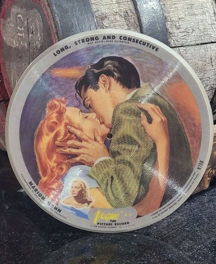 The tracks featured on this stunning 10-inch 78 rpm Vogue Picture Record are Long, Strong And Consecutive and You're Gonna Hate Yourself In The Mornin'. These records are considered highly collectible because of their limited production run, making them a coveted item among music enthusiasts and collectors alike. The unique combination of music and visual art in Vogue Picture Records set them apart from standard records of the time.