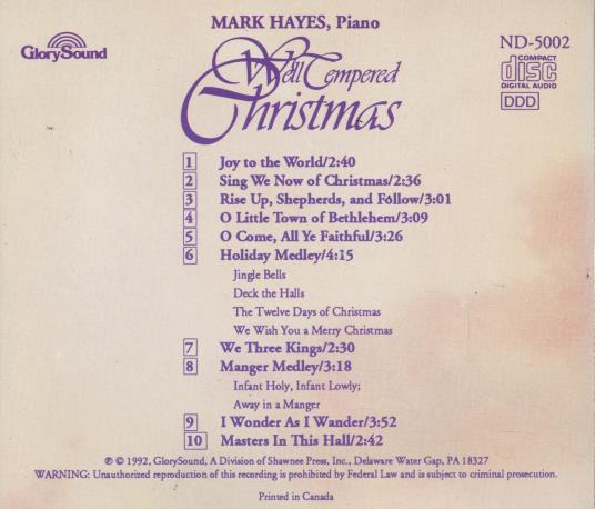 Mark Hayes: Well-Tempered Christmas MUSIC AUDIO CD classical jazz piano! 1992
