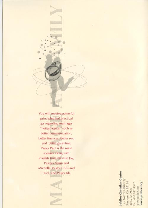 Don't miss this opportunity to invest in your relationship and family dynamics. Whether you're seeking to enhance communication, manage finances better, enrich intimacy, or navigate parenting challenges, this seminar offers practical insights and empowering guidance to help you thrive in your marital and family journey.