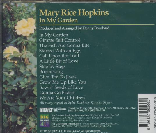 Released in 1995, "In My Garden" is a testament to the talent and dedication of Mary Rice Hopkins and her commitment to spreading joy through music.