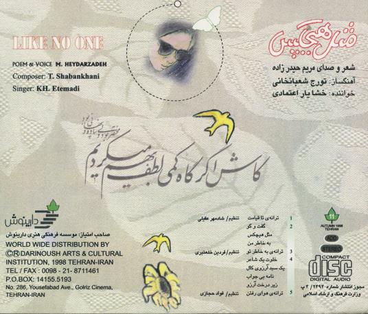 Maryam Heydarzadeh: Like No One MUSIC AUDIO CD Iranian pop 1998 Darinoosh Arts