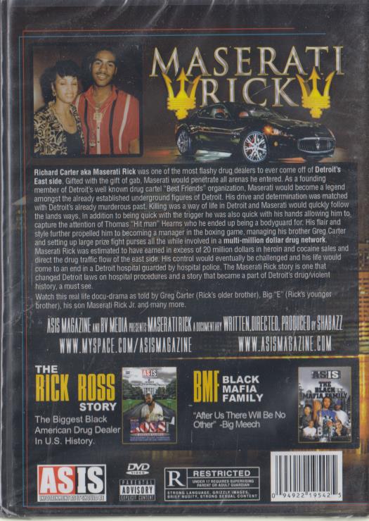 Richard Carter aka Maserati Rick was one of the most flashy drug dealers to ever come out of Detroit's Eastside. Gifted with the gift of gab, Maserati Rick penetrated every arena he entered. As a young man he became well known and well connected in Detroit; his name alone became legendary among the city's underground figures.