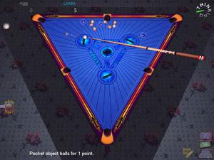 Never again wait for a table time in your local billiards parlor since "The Pool Hall Comes Home" with Maximum Pool. Seven classic tables, five original bonus tables and games, four adjustable skill levels, configurable video-captured computer opponents, interchangeable standard and "cool" shaped tables, and online play provide a diverse challenge for novice and expert players alike.
