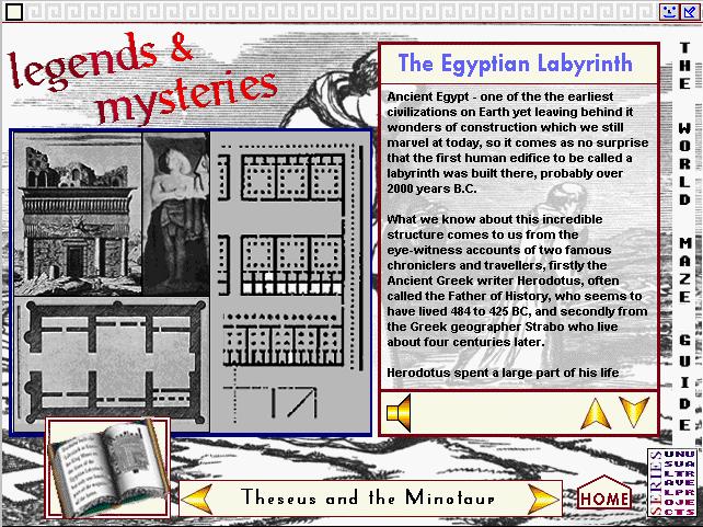 Since civilization began, man has always been in intrigued with games, challenges. The ancient Greeks, for examples, formed the Olympics to show off athletic prowess. But it was the Egyptians, who, in an attempt to challenge the mind rather than the body, created one of the first games, the maze. Since then, man's fascination with mazes has grown and developed, from simple mazes, to gigantic, complex labyrinths. It is a unique glimpse into the intricacies of the human mind. Maze, from Meca Software, attempts to chronicle that fascination, in an engaging Multimedia presentation.