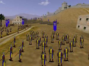 This historical war game features both long-term empire building and real-time combat. The game is set in the heart of the Dark Ages, between the 11th and 15th centuries, and features hundreds of historical battlefields from western reaches of Europe to the northern tip of Africa. Players can choose to lead the English, the French, the Byzantines, the Turks, or one of eight other rising nations. Special campaigns allow players to take the roles of famous figures, such as Richard the Lionheart or Joan of Arc, and follow historical movements like the Crusades, the Mongol Invasions, and the Hundred Years War. The game's 12 playable factions feature over 100 unit types each and battles can involve as many as 10,000 troops.