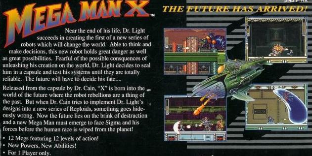 As his life was ending, Dr. Light was successful in creating the first in a new series of robots that could think and make decisions on their own. Fearing the worst, Dr. Light sealed the robot until all of its systems could be thoroughly tested. Released by Dr. Cain, a new Mega Man was born. When Dr. Cain tries to implement the new systems into a series of Reploids, something goes horribly wrong. Now, the new Mega Man must fight to save humanity in 12 levels of intense action. Will he be successful? Find out with MEGA MAN X.