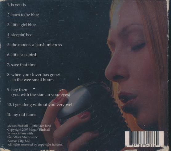 Megan Birdsall is a jazz vocalist from Kansas City, Missouri. On Little Jazz Bird she interprets classic jazz standards with a warm, intimate voice and tasteful arrangements. The album features a selection of well known torch songs and mid tempo swing numbers delivered in a traditional vocal jazz style. The recording showcases Birdsall's phrasing and emotional storytelling over small group accompaniment.