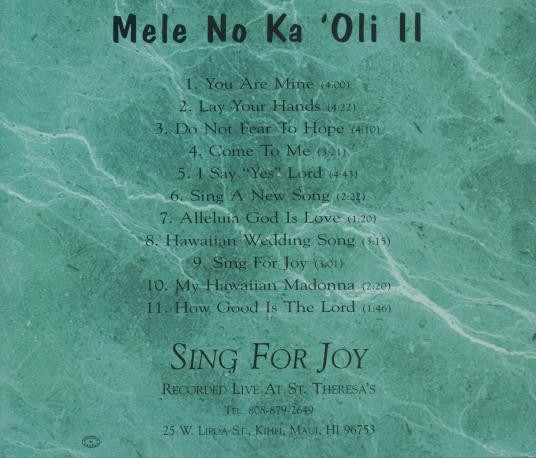 Mele No Ka 'Oli II Sing For Joy MUSIC AUDIO CD hawaii choral St. Theresa's Choir