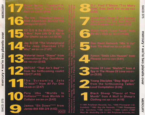 Mercury: We're 2 Planets Over PROMO MUSIC AUDIO CD hip hop rock funk soul 1991