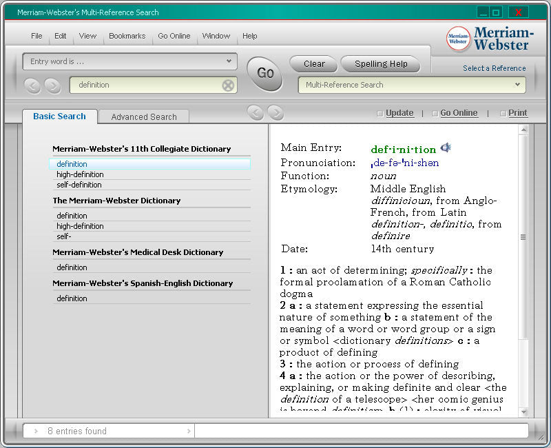 Hot-keys allow you to access the Merriam-Webster Dictionary from any on-screen word editor, word processor, web browser, or any desktop publisher.