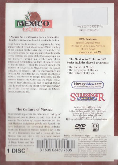 Mexico For Children: The Culture Of Mexico DVD VIDEO EDUCATIONAL K-4 heritage