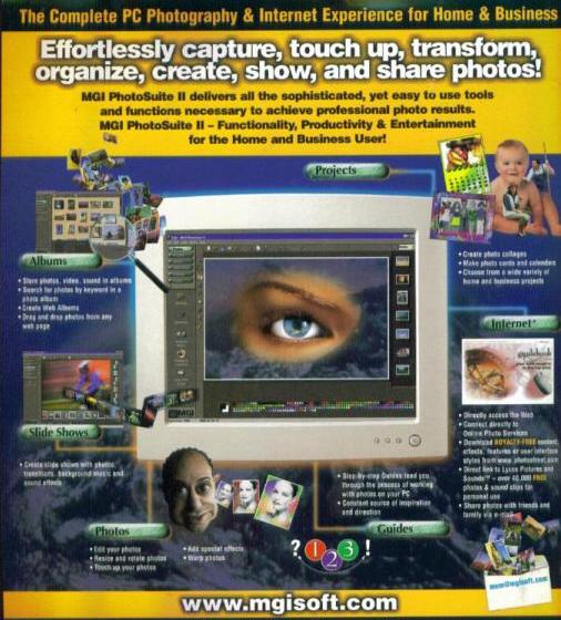 In the world of digital photo editing, fierce competition has evolved amongst many leading companies and products. MGI PhotoSuite 2 SE, from MGI Software, has managed to break beyond that barrier and produce an immaculate program without being clawed at by rivals for a simple reason - the program is far above the rest and out of reach of the opposition. You can input a photo or image from numerous mediums such as CD-ROMs, scanners, digital cameras, etc.