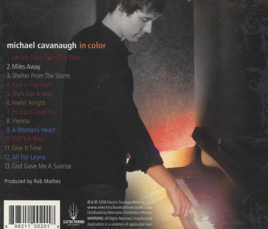 Michael Cavanaugh is a charismatic performer, musician, and recording artist best known for his role in Billy Joel's hit Broadway musical, 'Movin' Out'. The album 'In Color' features reinterpretations of rock legends that have influenced him over the years. Cavanaugh brings something new to the classic songs while maintaining their integrity. The album also includes four original tracks.