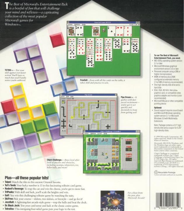 MS Entertainment Pack 1-4 PC CD Jezz Ball Tetris Word Zap Pipe Dream Tut's Tomb