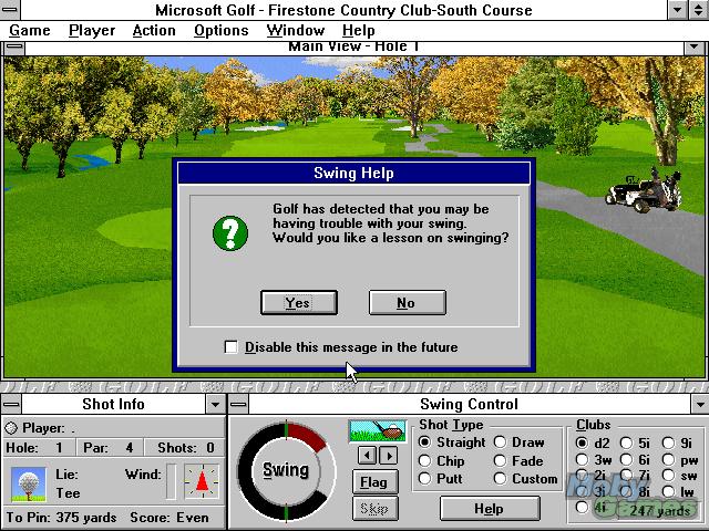 And as far as golf games go, this is one of the best. From the smooth interface and fast redraws to catchy voiceovers, putting grids, fly-bys and tips, Microsoft Golf will see to it that your round of golf is enjoyable, immersive, and, perhaps most important, quick. One minor problem: it's next to impossible to develop consistency when chipping from around the greens - but most golf pros will tell you chipping is one of the hardest parts of the game.