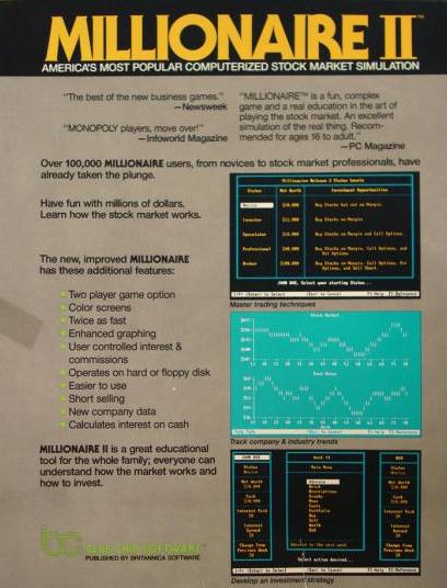 Millionaire II 2 PC CD invest money in stock market money investing sim game!