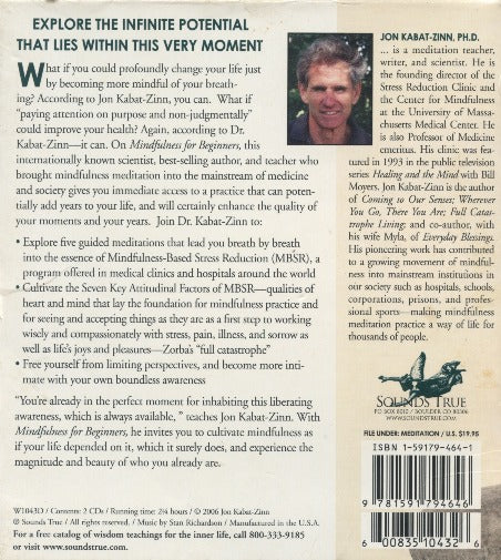 Imagine profoundly transforming your life by simply becoming more mindful of your breathing. According to Jon Kabat-Zinn, this is entirely possible. What if "paying attention on purpose and non-judgmentally" could enhance your health? Once again, Dr. Kabat-Zinn affirms that it can. On Mindfulness for Beginners, this internationally renowned scientist, bestselling author, and mindfulness meditation advocate grants you immediate access to a practice that can potentially add years to your life and undoubtedly enhance the quality of each moment and year.