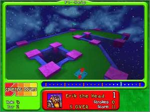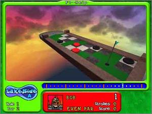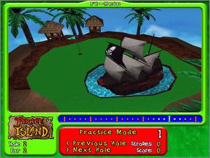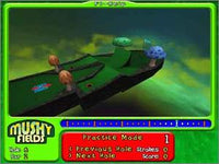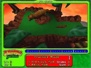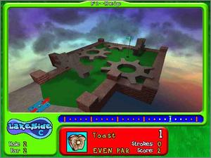 Prior to the start of play, players (up to four people can participate on a single computer) select from a cast of 12 avatars -- an oddball collection that includes a ninja, dinosaur, knight, Viking, skeleton pirate, robot, and a slice of buttered toast. After each hole, a scorecard is displayed that tracks each player's score for the current round, as well as performance statistics such as holes-in-one and the average for each hole. A Practice option permits players to hone their skills on any one of the available courses, while the Hall of Fame records any noteworthy achievements performed out on the mini-links.