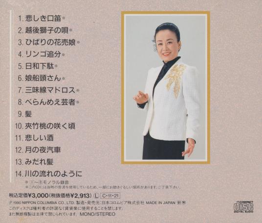This release collects classic songs by a veteran Japanese vocalist known for performing enka and traditional pop ballads. The compilation highlights emotional storytelling and rich vocal delivery across a range of nostalgic arrangements. It features both older monaural recordings and later stereo productions, illustrating the artist's long and influential career. The title track "川の流れのように" anchors the set as a reflective, well known ballad.
