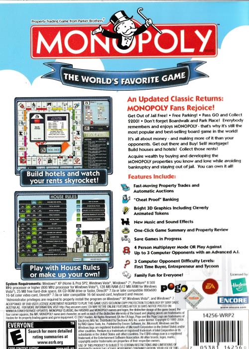 Monopoly 2007 PC CD original updated classic buy sell mortgage houses trade game