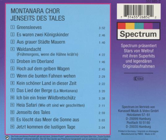 Montanara Chor: Jenseits Des Tales MUSIC AUDIO CD German mens group Volksmusik