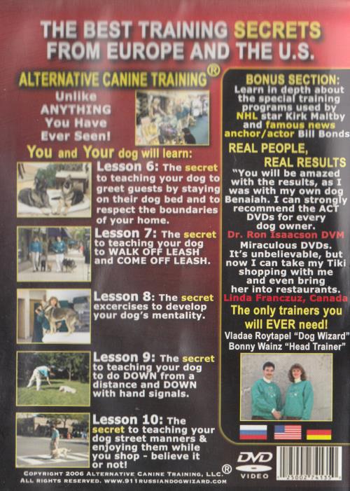 Discover the best training secrets from Europe and the U.S. Alternative Canine Training® presents an innovative, patent-pending dog training system designed to deliver reliable, lasting results. This DVD includes a FREE bonus mini-book and real-world techniques used by professional trainers and athletes.