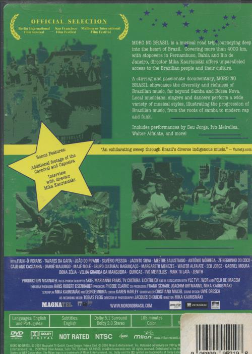Moro no Brasil ("I Live in Brazil") is a musical journey that delves deeply into the heart of Brazil. Experience Brazilian culture and get to know its people with over 50 musical performances from the streets of Brazil, including interviews and performances by Walter Alfaiate & Seu Jorge, Antonio Nobrega, Darue Malungo, Silverio Pessoa, Margareth Menezes, Ivo Meirelles and more. Moro no Brasil is a stirring passionate documentary that grants the viewer unparalleled access to the diversity and musical richness of Brazilian music, reaching far beyond Samba and Bossa Nova. Writer/director Mika Kaurismakis musical journey covers 4,000 kilometers, with stopovers in Pernambuco, Bahia and Rio de Janeiro, and presents the voyage from the roots of samba to its present-day excursions into rap and funk.