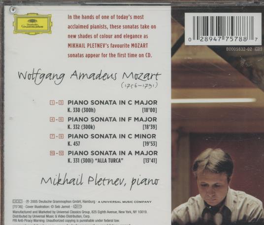 Wolfgang Amadeus Mozart: Piano Sonatas MUSIC AUDIO CD Mikhail Pletnev '05 SEALED