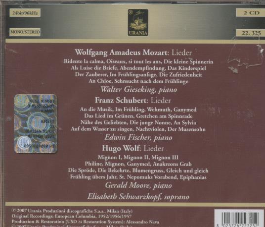Wolfgang Amadeus Mozart / Franz Schubert / Hugo Wolf - Elisabeth Schwarzkopf, Edwin Fischer, Walter Gieseking, Gerald Moore: Lieder