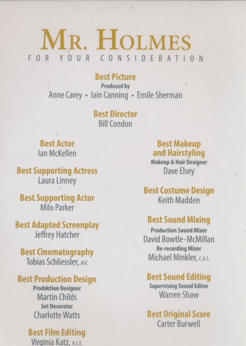 Mr. Holmes FYC DVD VIDEO MOVIE Sherlock Holmes retired drama! Ian McKellen 2015