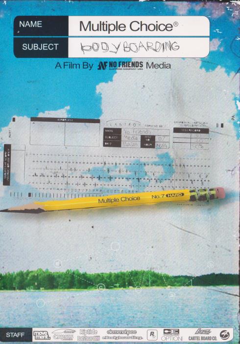 No Friends 7 : Multiple Choice (Bodyboard) - This highly anticipated movie feature produced by No Friends Media is it's seventh major release. The riders have raised the level again featuring amazing spots from secret African locations, California, Hawaii, Tahiti, Australia, and Indonesia. Spencer Skippers best section to date is documented here with a song by Led Zepplin to accompany the masterpiece. Ben Player displays how to fly like a canary through reefs you would be nervous just looking at on the Canary Islands. Stoker reintroduces his beloved "Eat It" section with some poundings worth there wight in gold.