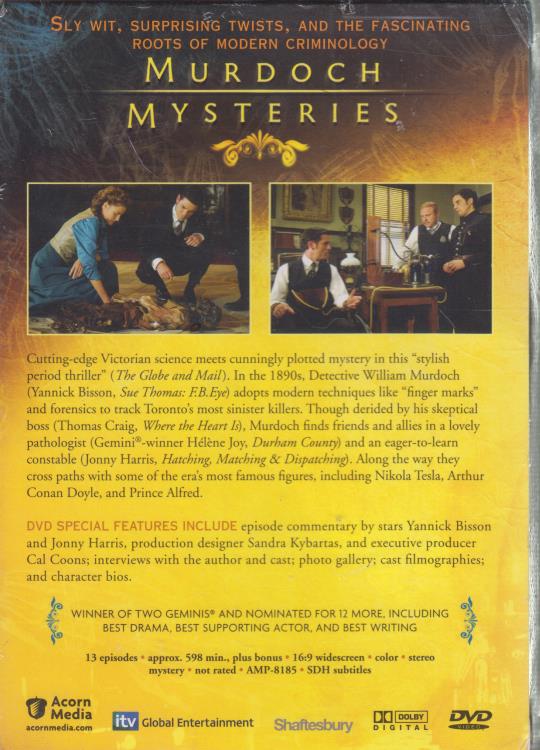 Inspired by a series of television films drawn from the mystery novels of Maureen Jennings, the engaging Murdoch Mysteries: Series One charts the captivating cases of Toronto police detective William Murdoch during the late 19th century. Murdoch (Yannick Bisson) embodies a blend of scientific advancement and deep-rooted faith, utilizing groundbreaking techniques such as fingerprinting, blood-testing, and trace evidence while closely collaborating with his department's pathologist, Dr. Julia Ogden (Hélène Joy). Operating under the watchful eye of Inspector Brackenreid (Thomas Craig), an experienced officer who values Murdoch's results, their dynamic showcases the evolving landscape of technology that leads to the innovations of the 20th century, such as radio and television. Murdoch's spiritual perspective enriches his rational approach, as he sometimes seeks guidance from a medium (Maria del Mar) to uncover clues, integrating his ethical beliefs into solving cases in a complex world.